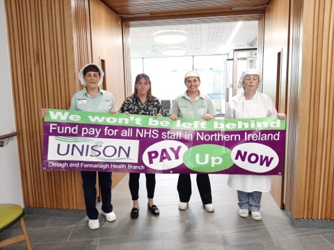 Our campaign for fair pay for NHS staff in Northern Ireland continues this week. We’ve held demonstrations in Omagh Hospital and Tyrone and Fermanagh Hospital.