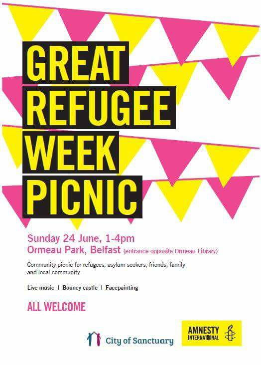 This Sunday 23rd of June Ormeau Park in Belfast will host the third annual Great Refugee Week picnic. Come along for music, food and family fun between 1pm and 4pm.