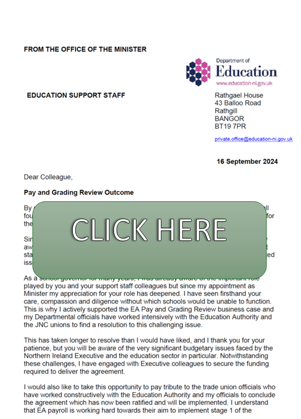 The pay and grading circular has now been issued and we will advise members as soon as possible about payment dates. Please go to the link to read the circular. If members have any queries please contact your branch.