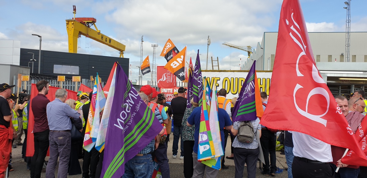 Today UNISON again joined in solidarity alongside workers and other trade unions at Harland and Wolff in a bid to save jobs at the ship yard.
