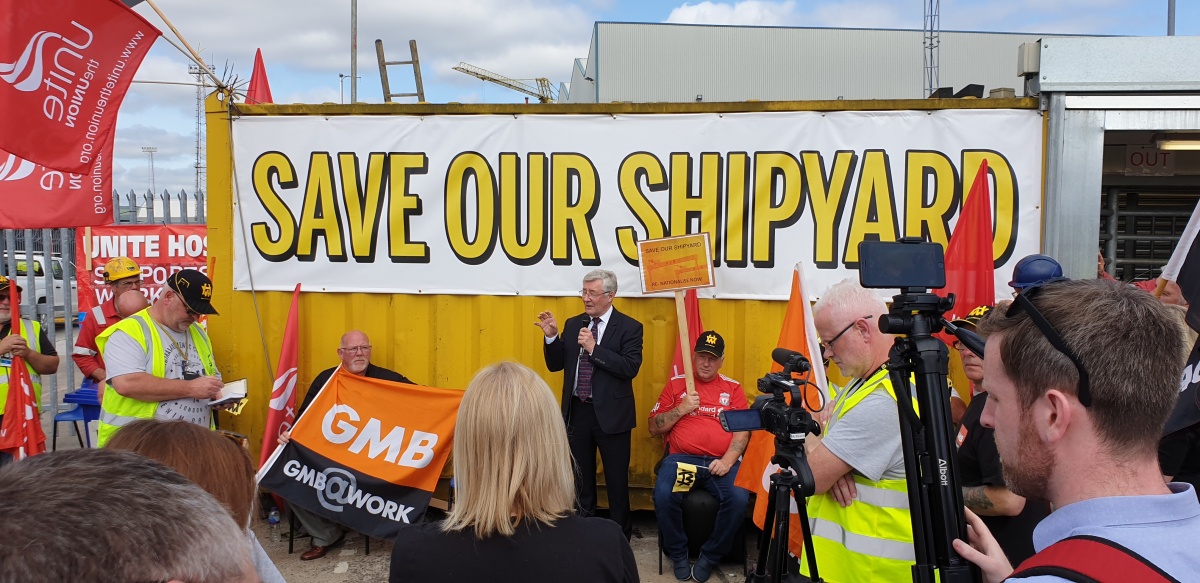 Shadow Secretary of State for Northern Ireland Tony Lloyd called on the government to renationalise the ship yard and messages of solidarity were read from unions and workers across the UK and South Africa.