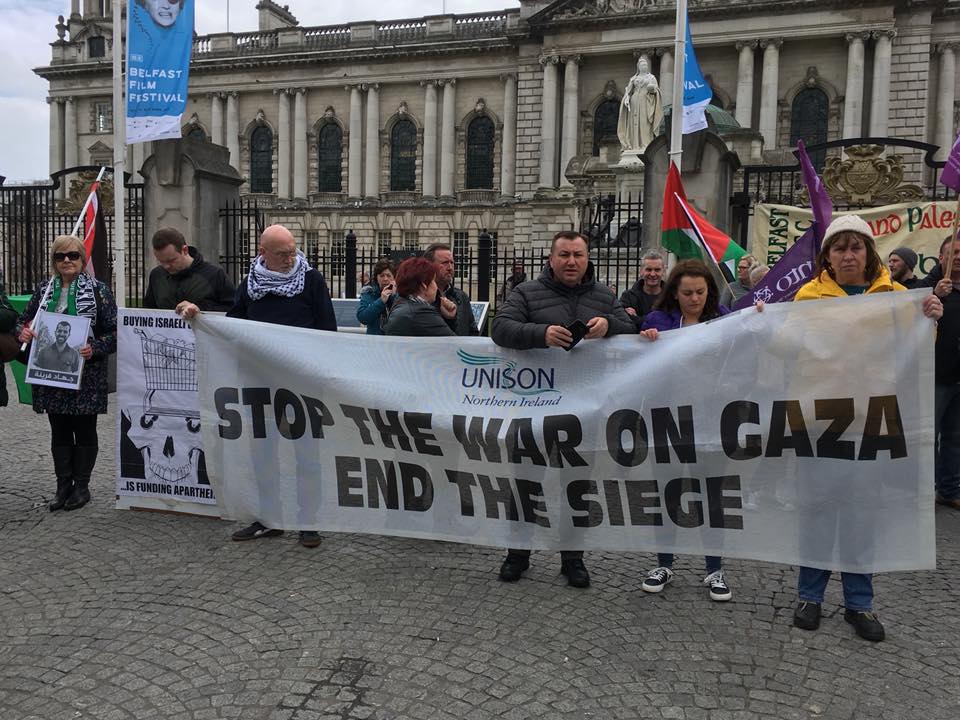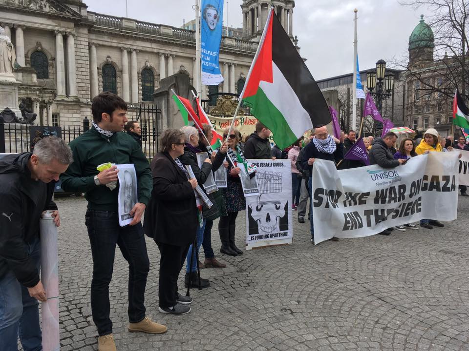 Speaking about the rally Trade Union Friends of Palestine stated "Given the level of anger at the new level of callousness being demonstrated by Israel, and the planned use of lethal force to prevent Palestinians demonstrating for their rights, we have agreed to stand alongside our Palestinian brothers and sisters by protesting every Saturday in the centre of Belfast. As they continue with their Great March of Return, so too do we continue to support them."