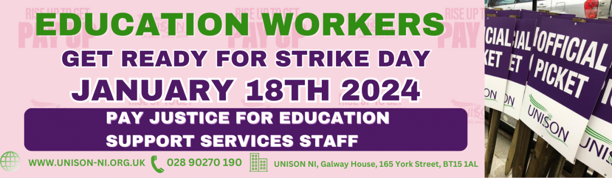 UNISON members throughout support services in Education and the Health services are preparing for a big day of Industrial action.