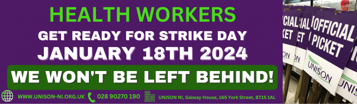 Thursday will be your sixth day of strike for pay parity. You have never given up and have steadfastly pursued your demands. UNISON is proud of the determination of our members in the Health service to secure pay parity.